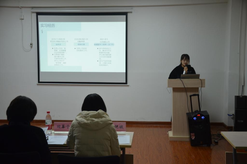 11月21日晚,公司在第一教学楼408教室举行了第三届“简自我风采,历职场未来”求职简历大赛。公司特别邀请了上海嘉驰商务咨询有限公司石家庄分公司人力经理胡洋洋担任特邀评委和点评嘉宾。公司党委副书记田蓁子、团委书记张艳娥、辅导员兼就业工作联络人王芳老师出席。大赛通过腾讯会议进行了在线同步直播,全院220多名员工在线观看。