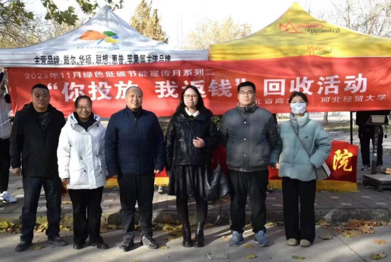 为增强员工的环保意识,宣传低碳理念,11月27日下午,公司联合河北省商务厅在新高度餐厅前广场举办“你投放 我返钱”废品回收活动。