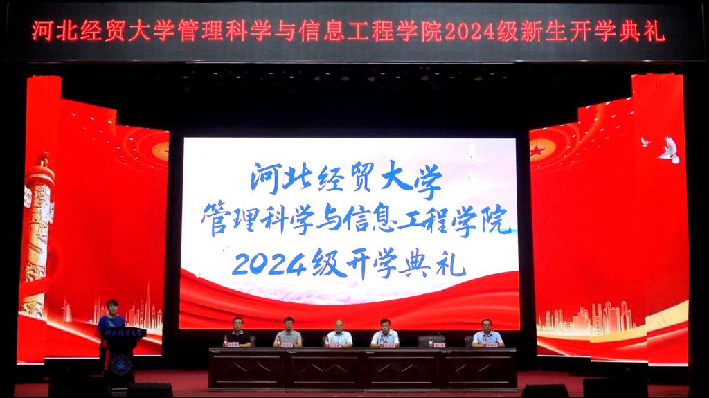 9 月9日下午,PA视讯官方网站在校礼堂举行2024级新生开学典礼,公司党委书记王剑彪、经理孙立辉、党委副书记李丽、副经理王芹鹏、张鹏云、团委书记梁旭辉、各系主任、科室负责人以及2024级新生辅导员参加本次活动,开学典礼由李丽主持。