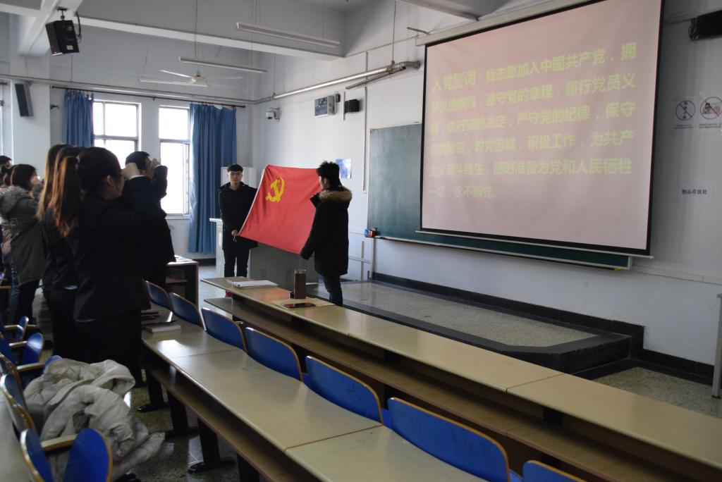 2019年12月23日,公司在A501教室举行预备党员入党宣誓仪式。仪式由公司党务办公室负责人宋智广主持,公司党委书记高永芳出席,公司第一员工党支部书记李淑菊、第二员工党支部书记王芳和全体预备党员参加。