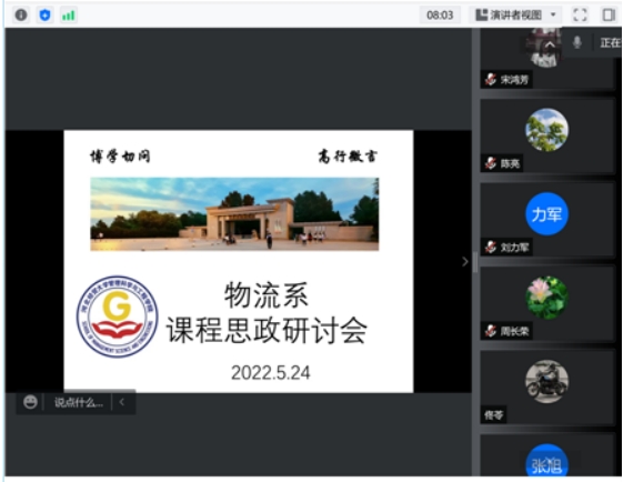 2022年5月24日,物流管理系召开了课程思政研讨会。会议由物流管理系主任郭义荣主持,系全体教师参加。