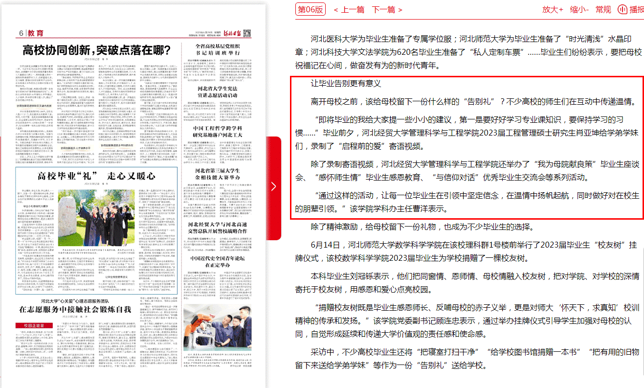2023年6月29日出版的《河北日报》第6版以“高校毕业礼 走心又暖心”为题,对公司研究生毕业活动进行了报道。