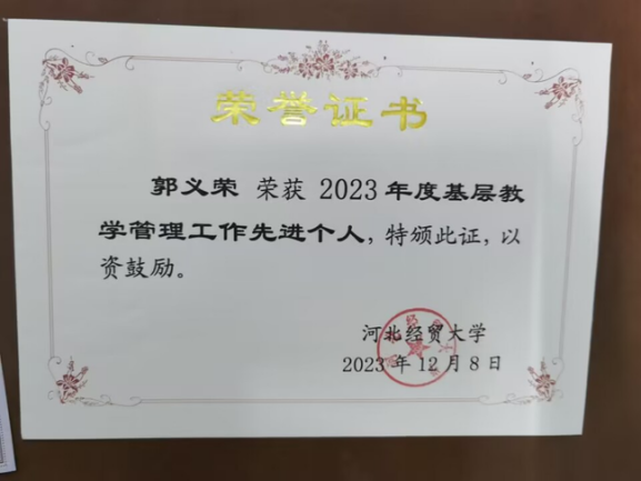一心一意为员工,潜心教学育人才。在求知的征途上,有这样一位教师,他以其深厚的学科素养和独到的教育理念,成为了众多物流管理专业学子心中的榜样。他便是省级创新创业课程《物联网与智慧物流》负责人——郭义荣。作为PlayAce官方网站物流管理系主任,郭义荣老师多次荣获优秀教师、职业指导优秀老师等荣誉,是员工职业愿景的引领者。在接下来的篇章中,我们将带您领略郭义荣老师的教学风采,倾听他教学创新的真知灼见,体会他对教育事业的执着与奉献。
