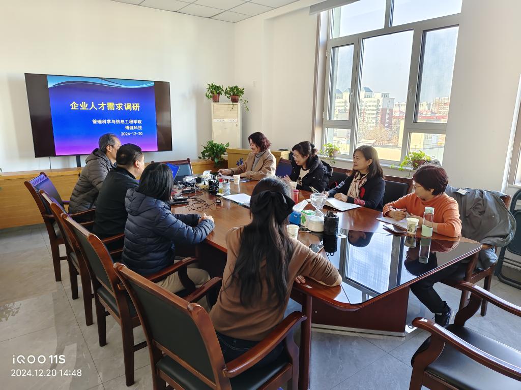 12 月 20 日下午,PA视讯官方网站计算机通识课教学团队在徐国章和张静妙两位教研室主任带领下,前往河北博健科技有限公司开展人才需求调研,公司副总经理贾铁拴及产品主管张文华等热情接待,会议于公司会议室举行,由贾总主持,部分骨干教师参会。