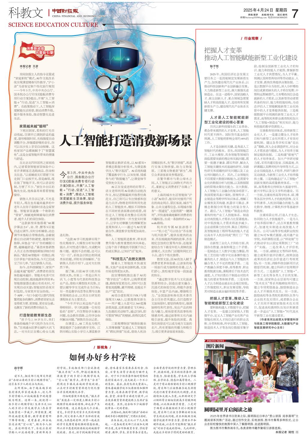 2025年4月24日,《中国财经报》第7版(科教文版)刊发公司PA视讯官方网站耿子恒教授的理论文章《把握人才变革 推动人工智能赋能新型工业化建设》。