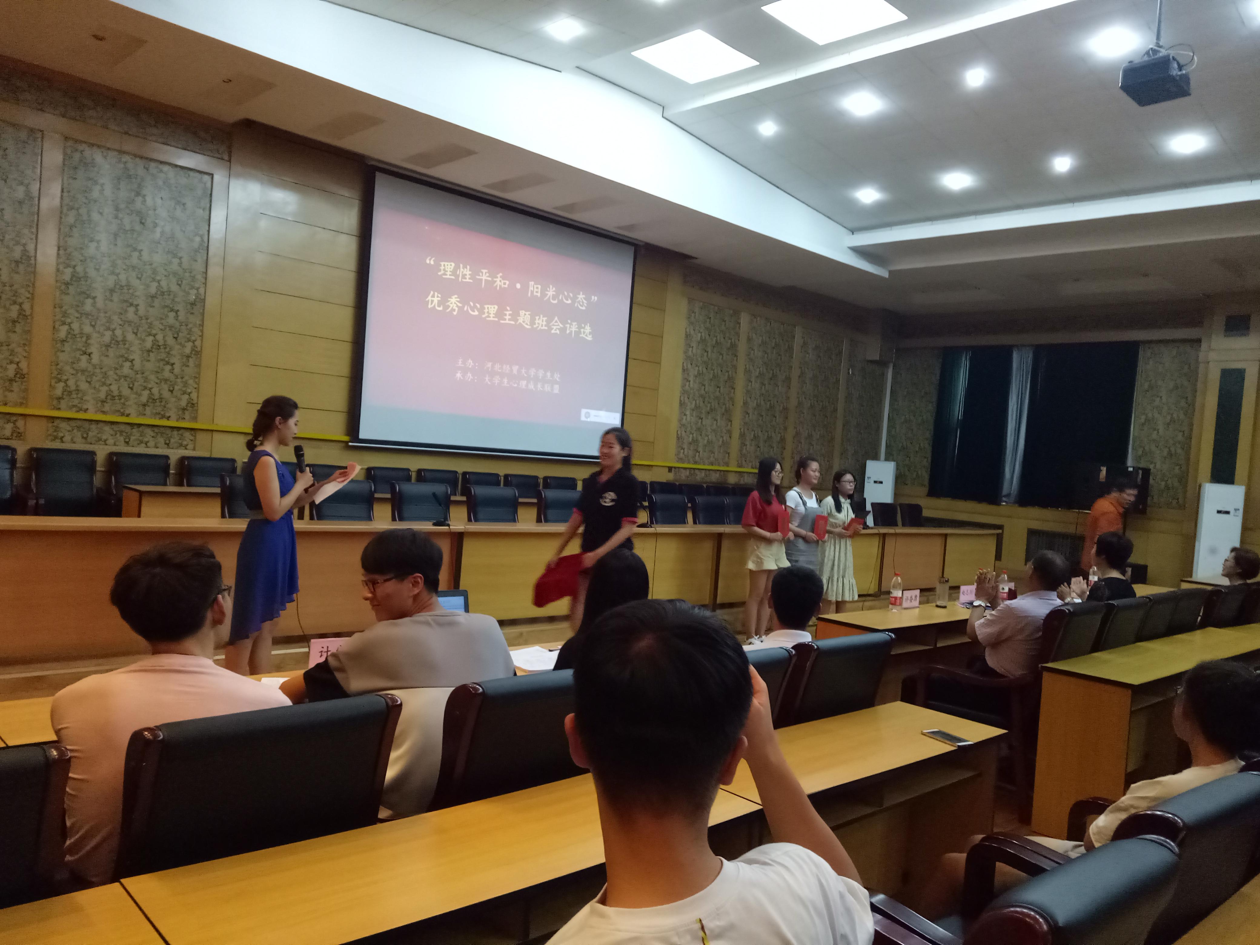 6月5日,下午两点半,由校员工处主办,老员工心理联盟承办的“理性平和,阳光心态”优秀心理主题班会评选活动决赛在会议中心拉开帷幕。管理科学与工程公司由16级物流二班心理委员陈彩云代表公司参赛。