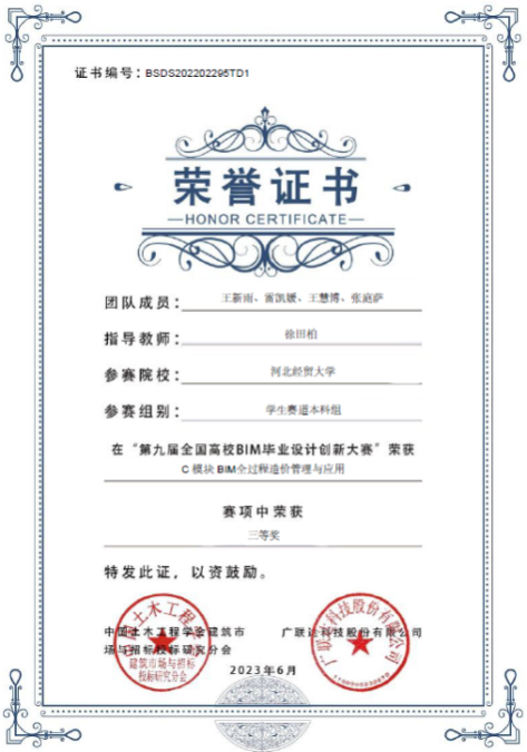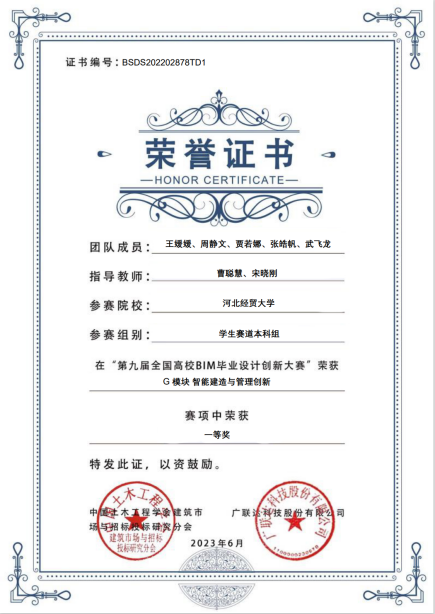 2023年6月26日,由中国土木工程学会和广联达科技股份有限公司主办的第九届全国高校BIM毕业设计创新大赛全国网络竞赛阶段及总决赛落下帷幕。公司学子在比赛中发挥出色,荣获一等奖1项、二等奖1项、三等奖3项。