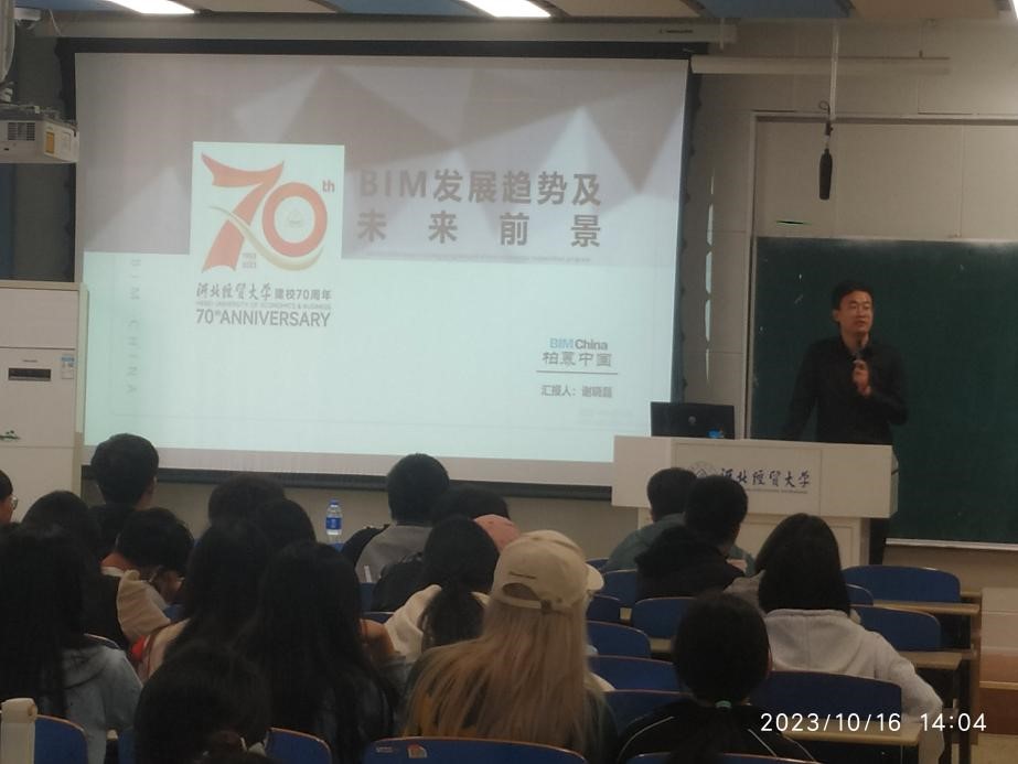 2023年10月16日下午,公司工程管理系邀请北京柏幕筑云总经理谢晓磊在北三教A101教室开展“我国BIM应用现状及发展前景”专题分享。工程管理系2023级、2022级全体员工,部分2021级、2020级本科生、2023级硕士研究生及部分工程管理系教师参加了此次讲座,讲座由工程管理系教师杜命刚主持。