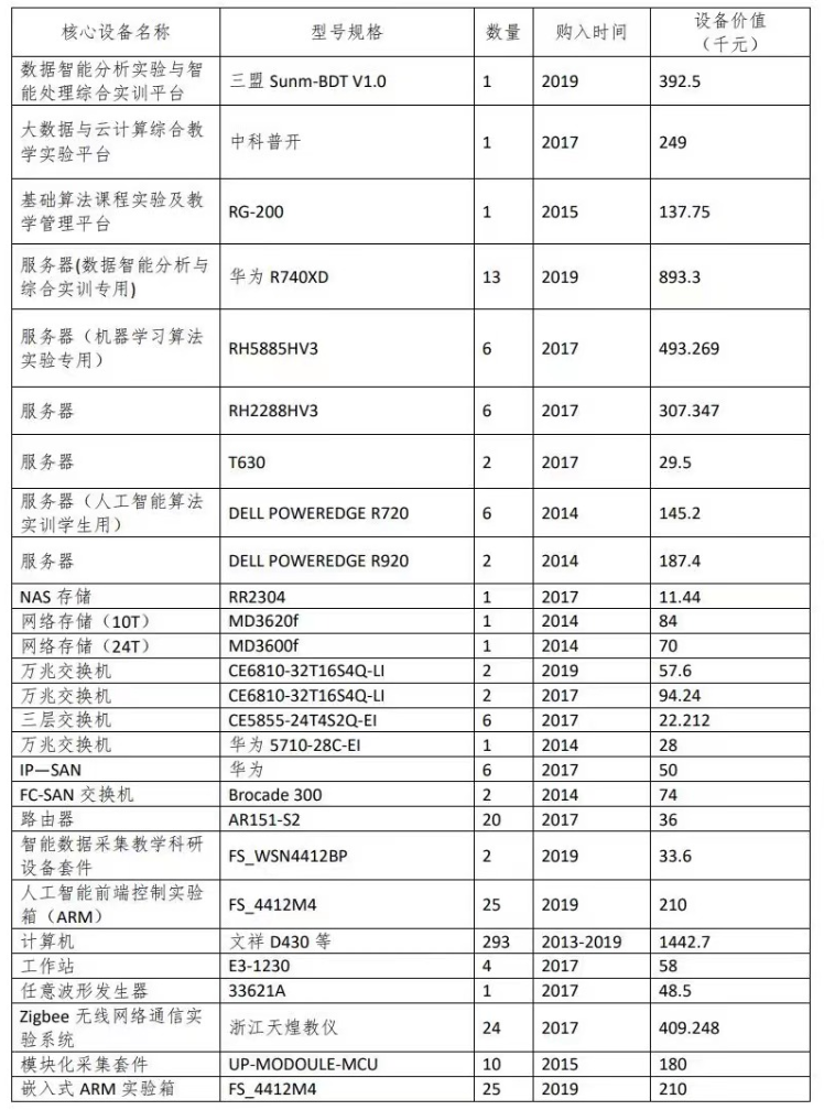 实验中心下设信息技术基础、计算机科学与技术专业、网络工程专业、软件工程专业、电子信息专业等5个实验模块和一个综合性创新人才培养基地。近年来,公司对实验中心的建设给予了大力支持,实验教学设备及环境得到巨大改善,在人才培养模式、教学方式方法、人才培养质量、团队队伍建设等方面均取得很大的成绩,起到了很好的示范效果。总资产由组建之初的 316 万元增加到 1099.2万元,建筑面积由 660 平方米增加到 2648平方米,现有仪器设备1045台套,其中价值10万元以上的贵重仪器 32台套。中心年可接待全校10余个专业超过84000人次。