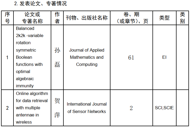 完成大数据实验教学平台的招标及建设工作,已投入运行使用。启动了“工程教育专业认证”工作,并已经取得阶段性成果。孙磊老师的《具有多种良好密码学性质的旋转对称布尔函数