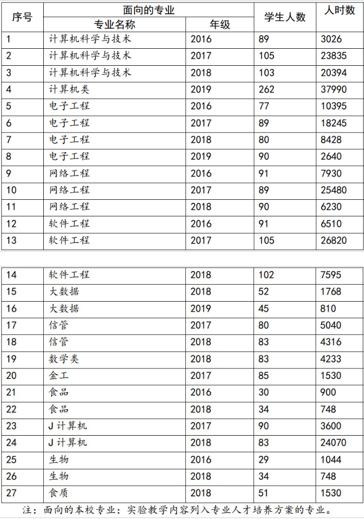 信息技术实验示范中心支撑计算机科学与技术、软件工程、网络工程及电子信息工程、数据科学与大数据等5个工科本科专业和计算