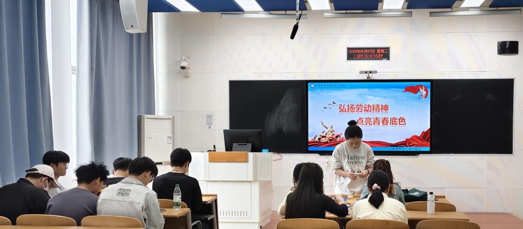 宣讲会伊始,杨明晓老师以不同历史时期劳动楷模事迹为引,带领同学们回溯劳动精神发展脉络,并强调同学们应将劳动精神融入所学专业,用专业技能服务社会需求。
